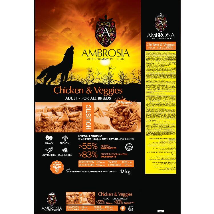 מזון יבש לכלב Ambrosia עוף וירקות 12 ק”ג