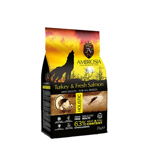 מזון יבש לכלב Ambrosia הודו וסלמון מיני 2 ק”ג
