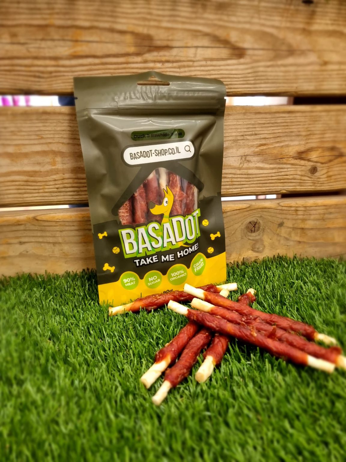 חטיף ברווז מלופף על עצם בקר