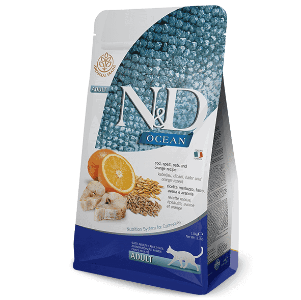 מזון יבש לחתול N&D דג בקלה ושיבולת שועל 10 ק”ג